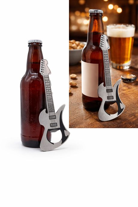 Luckies Rock Guitar Bottle Opener | Brushed Stainless Steel Pocket Opener