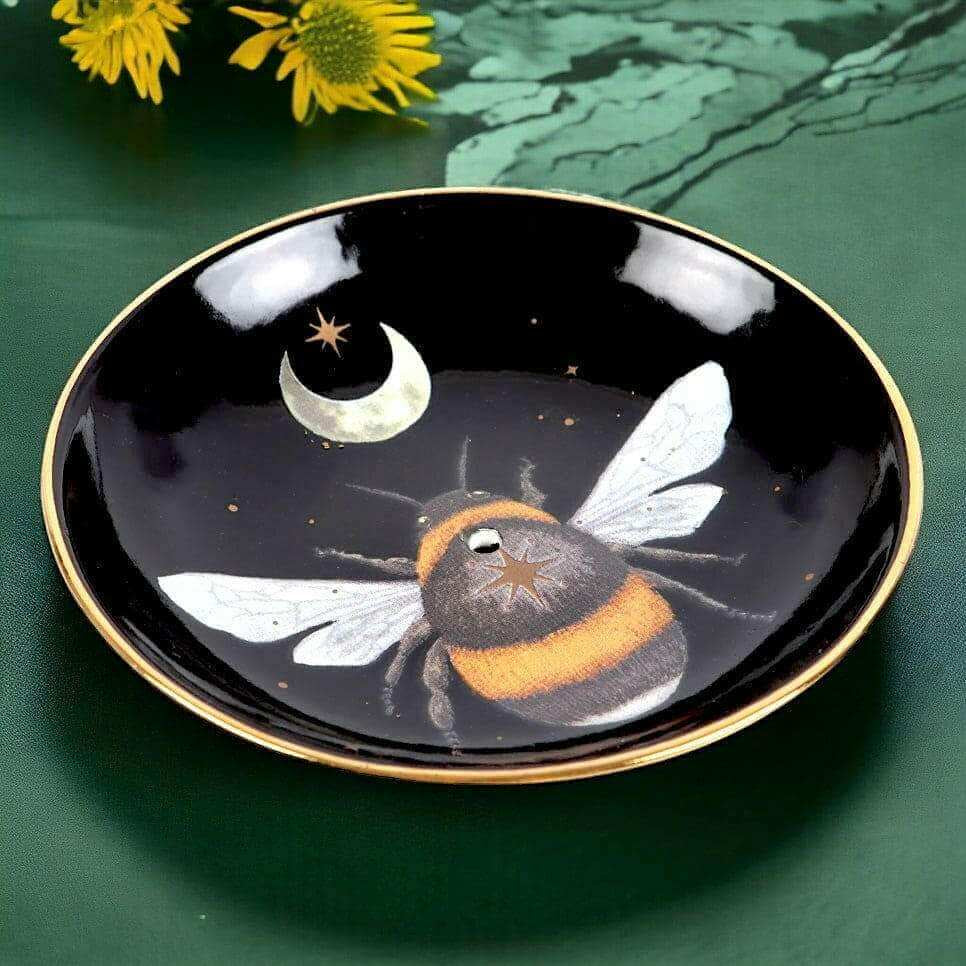 The Dark Forest Bee Ceramic Incense Plate Holder Black