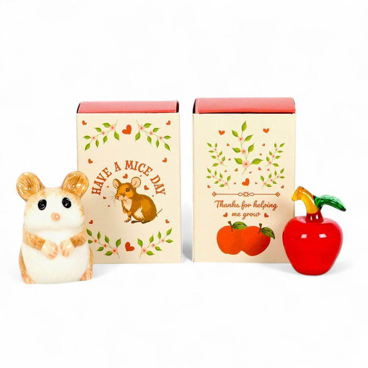 Glass Apples and Mouse in a Matchbox, Token Gifts for Teachers, Friends ideal Keepsake