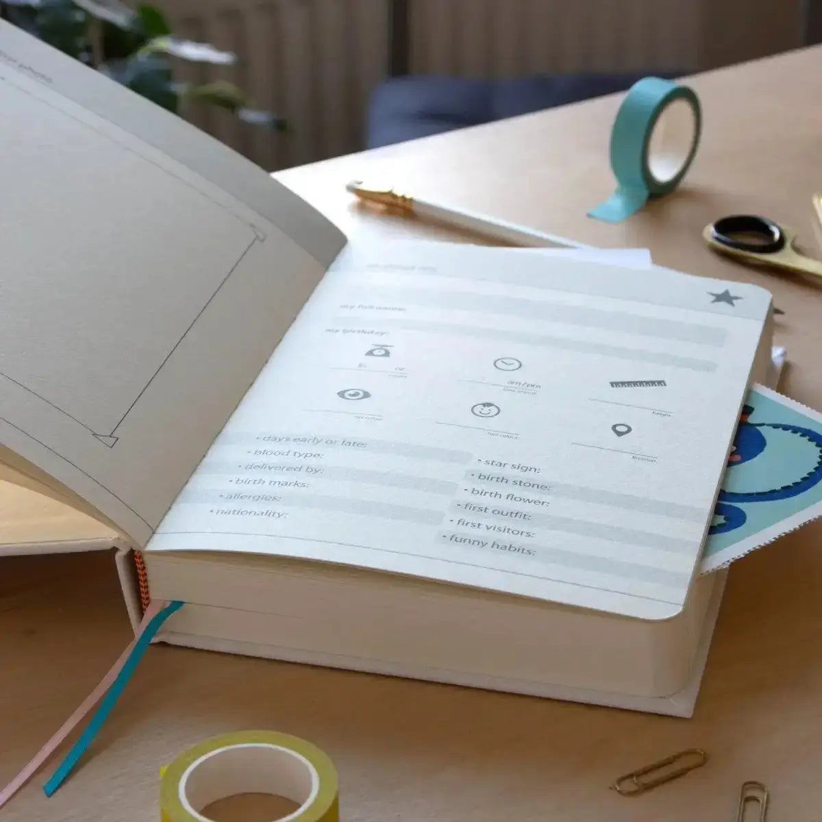 Capture your child's formative years with My Baby Book Journal. This all-in-one diary and scrapbook helps you record the special moments of your baby's first three years.